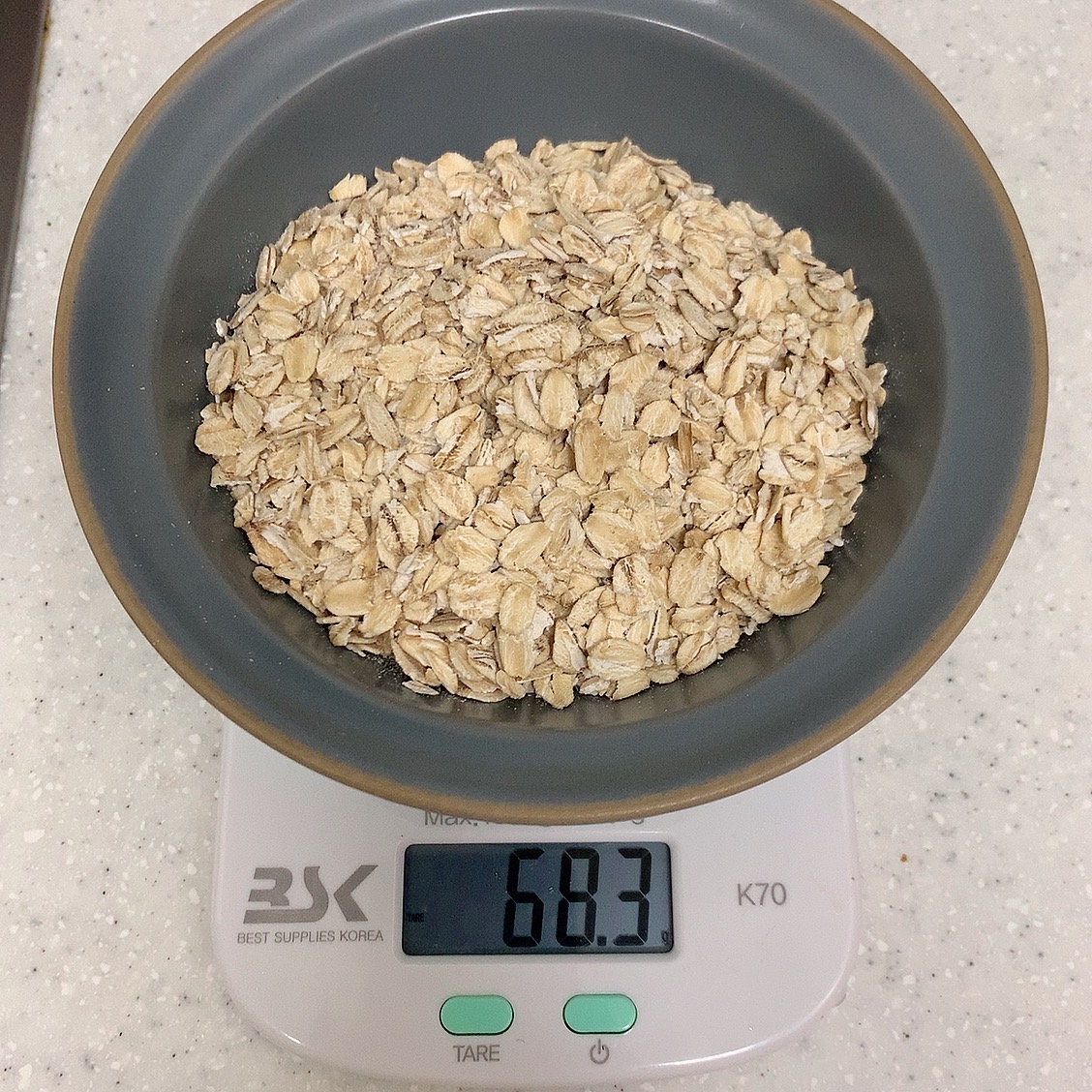 어른숟가락으로 5번양 오트밀을 준비합니다