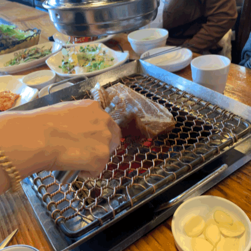 익은 돼지갈비는 가쪽으로 빼주시고,