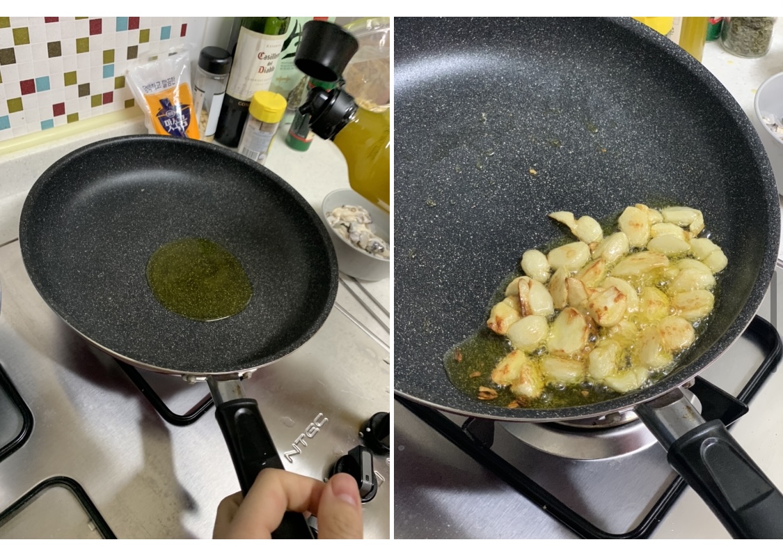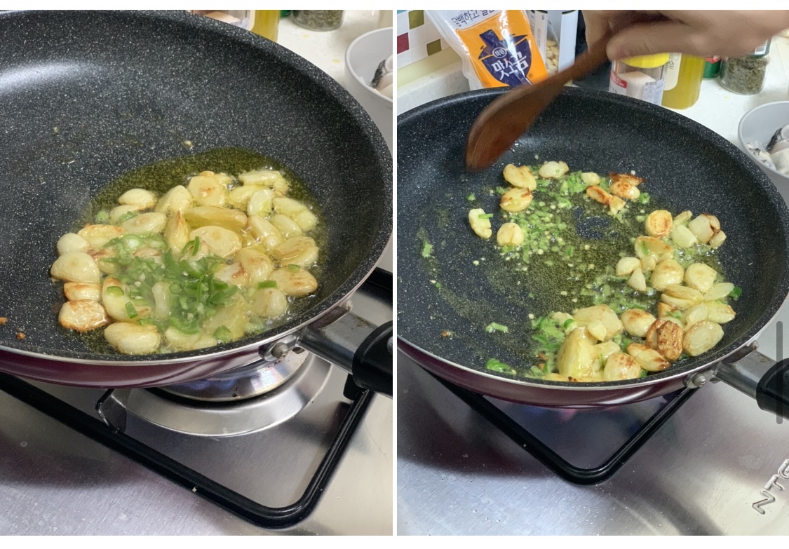 4. 마늘향이 충분히 배였으면 (5-6분)