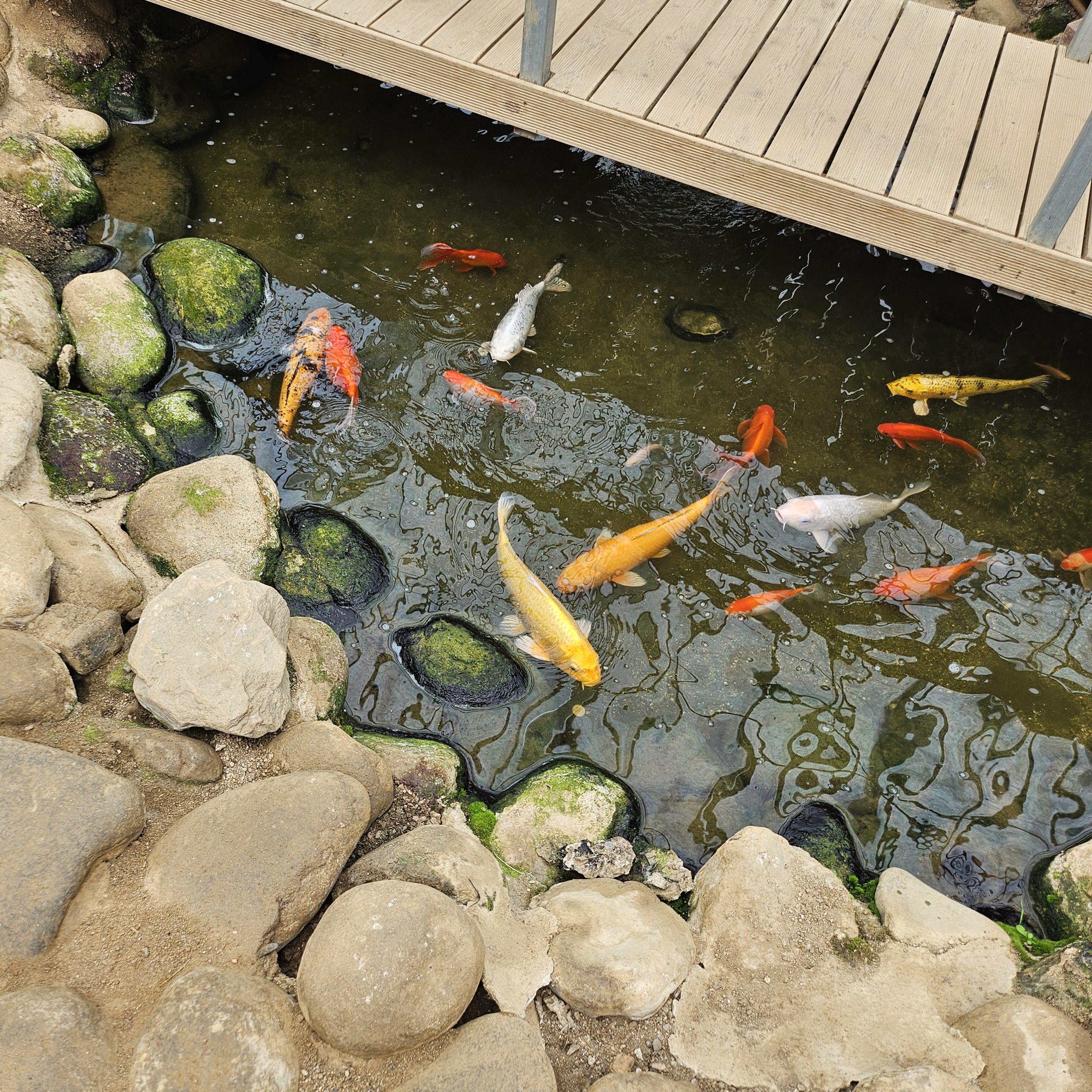 잉어밥 주니까 잉어들이 달려들었습니다.