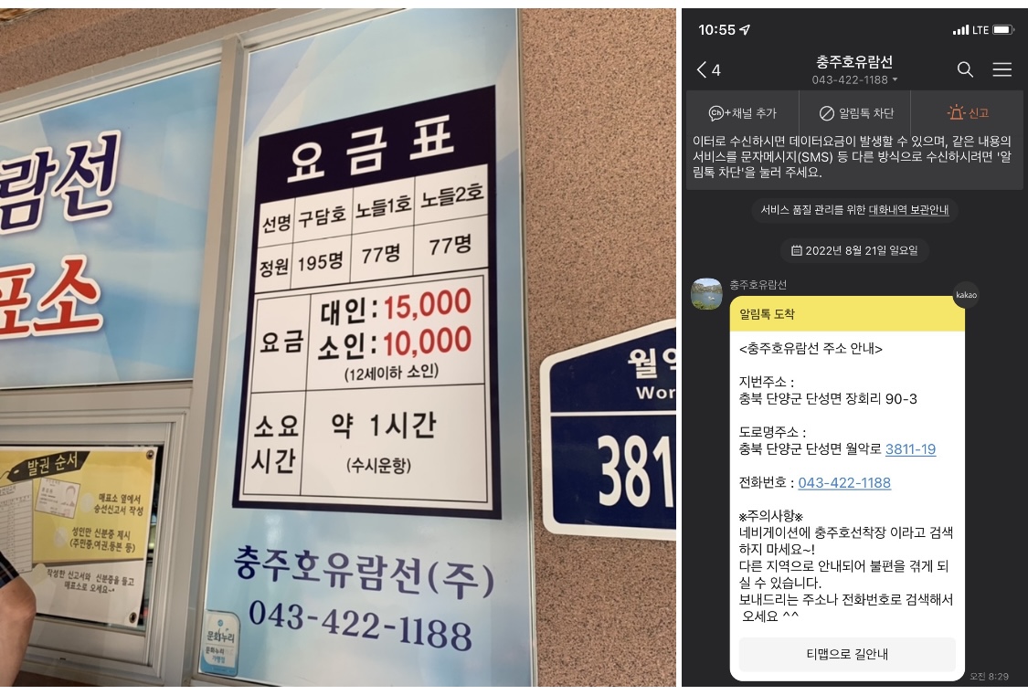 ✔️네비게이션에 충주호 선착장 말고 꼭
